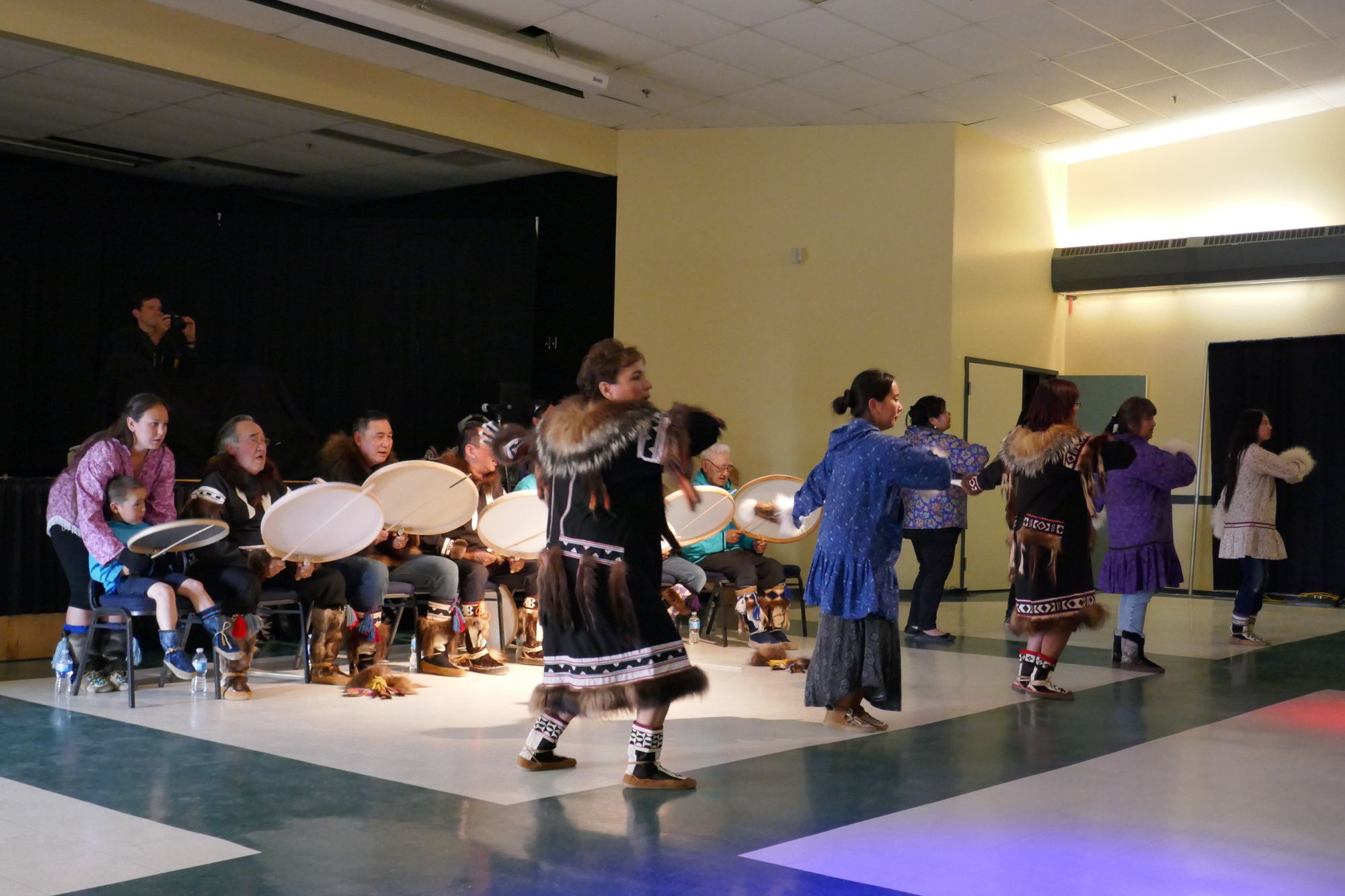 Inuvik selbst hat nicht sehr viel zu bieten. V.a. starten von dort aus die sündhaft teuren Touren nach Tuk – ab 600 $ ist man dabei. Ich war jedoch gerade zu Beginn des Northern Arts Festivals in Inuvik und schaute mir daher etwas nordische Kunst und v.A. die Eröffnungsfeier mit den Drummer&Dancer an. Dabei traf ich auch den Japaner Jimbo, welcher nun seit 8 Jahren mit dem Rad unterwegs ist und nun auch von Inuvik Richtung Südamerika fahren will.