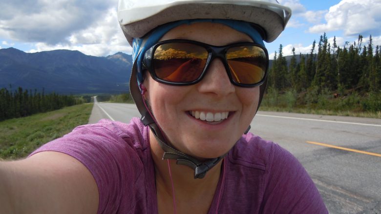 Auf der Baustelle vor Chicken durften wir dann aber nicht selber fahren. Wir konnten unsere Velos hinten auf den Pilotcar laden. Christian war auch auf der Ladefläche und ich bei der Fahrerin. Sie hat mir erzählt, dass sie auf den Baustellen täglich bis 14 Stunden arbeiten. Weiter haben sie für diese abgelegenen Baustellen jeweils ein Camp, da wohnen die Leute einige Wochen, arbeiten so viel wie möglich und gehen danach wieder nach Hause. Beim Anführen des Verkehrs durch die Baustelle, müssen sie genau aufschreiben, wie lange sie brauchen, um von Beginn bis Ende Baustelle zu fahren und wieviele Fahrzeuge in der Kolonne sind. Es dauerte also genau 23 Minuten, bis wir durch die Baustelle waren. Innnerhalb der Baustelle waren mehr als zehn Lastwagen und andere grosse Maschinen, deshalb wurde die Kolonne immer wieder gestoppt. Weiter würden die Leute, die den Verkehr lenken, immer wieder beschimpft und mit Dingen beworfen! Das war also ganz spannend 😉