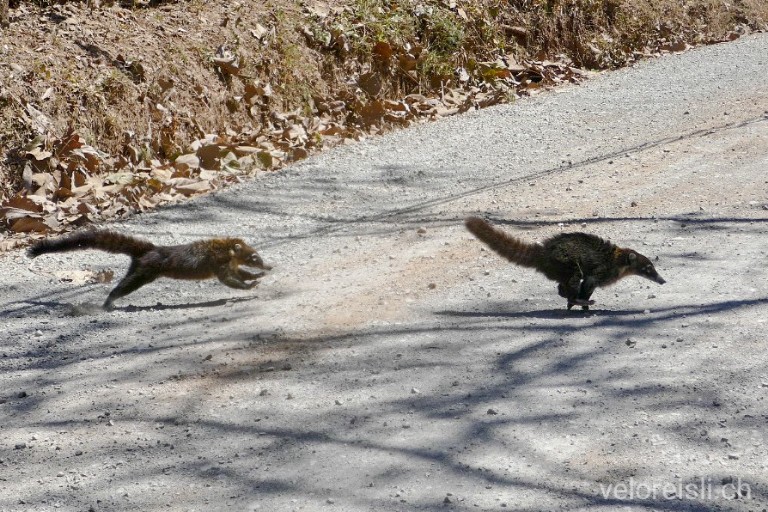Nach San Jose hatte ich genug von Verkehr und Lärm und es packte mich die Abenteuerlust. Ich suchte mir eine Route raus, welche nur über Nebenstrassen durch die Berge fürte und ich weitgehend verkehrsfrei velofahren konnte. So strampelte ich durch eine Landschaft, welche sehr an die Schweiz erinnerte. Überall standen nun Bauernhöfe verteilt in der Landschaft und die meisten Begegnungen machte ich mit Kühen, Pferden und Eseln. So ergab es sich dann auch, dass ich bei einem kleinen Bauernhof zuerst zum Kaffe, dann zum Znacht und schlussendlich zum übernachten eingeladen wurde. Und ich hatte Zeit, meine Treffsicherheit mit der Steinschleuder zu verbessern.